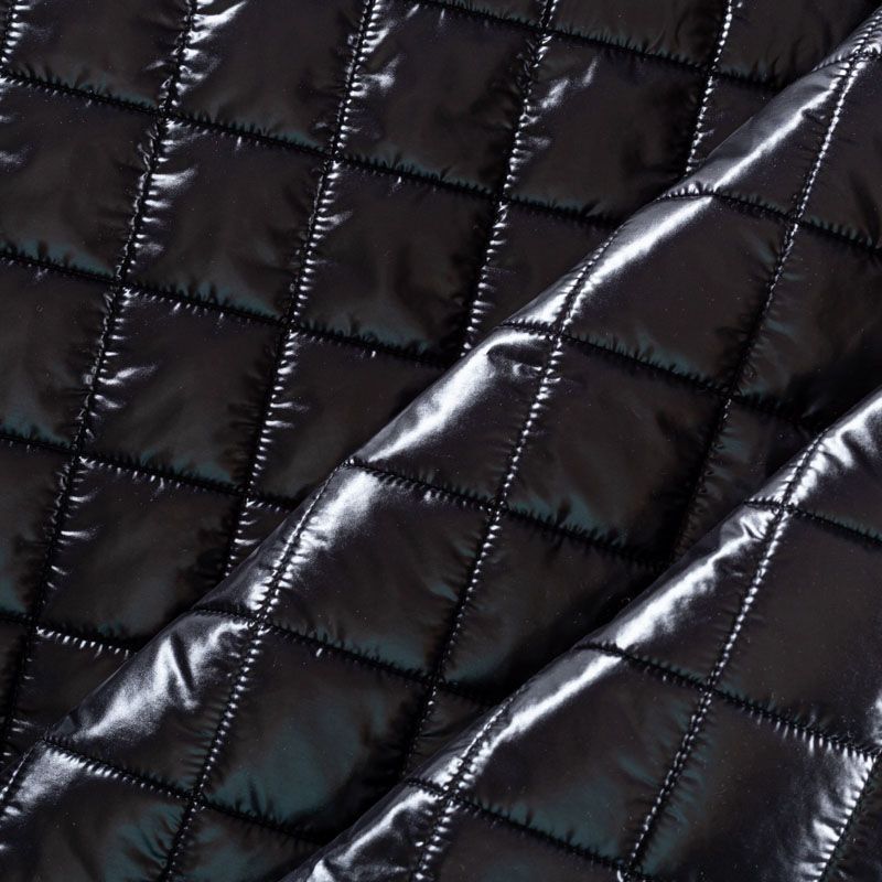 Двухслойная курточная ткань черного цвета хаки, простеганная не крупными квадратам. Нижний слой - синтепон, верхний - полиэстер, по качеству напоминает болонь. Очень мягкая и легкая, пластичная, хорошо драпируется. Прекрасно подойдет для  пошива легких пальто, курток, жилетов, накидок-кейпов, объемных сумок.