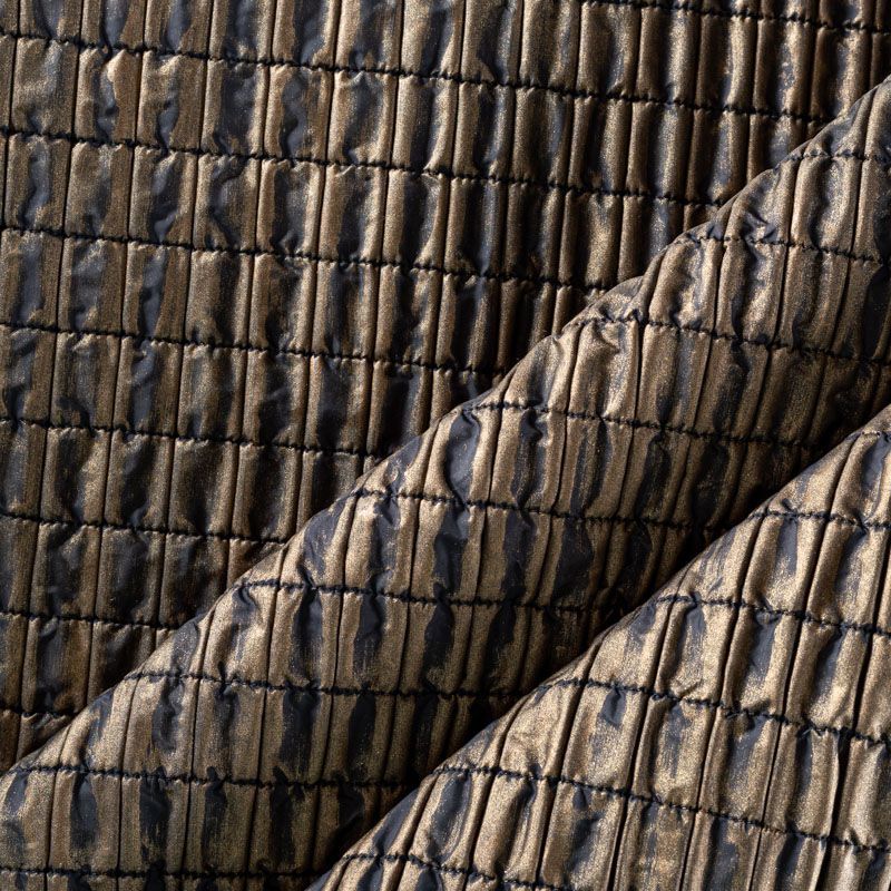 Оригинальная трехслойная итальянская курточная ткань бронзового оттенка с эффектом жатки, простеганная не крупными прямоугольниками. Нижний, черного цвета, заменяет подклад и верхний слой - полиэстер, по качеству напоминает болонь, а по фактуре кожу рептилии, между ними синтепон. Ткань легкая, пластичная, хорошо держит форму, отлично тянется по долевой, набирается на изделие объемом.  Прекрасно подойдет для  пошива легких пальто, курток, бомберов, жилетов, накидок-кейпов, объемных сумок, одежды для домашних питомцев, туристического снаряжения.