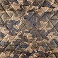 Двухслойная курточная ткань золотистого оттенка с оригинальным камуфлированным принтом, простеганная не крупными ромбами размером 4х4 см. Нижний слой - синтепон, верхний - полиэстер, по качеству напоминает болонь. Очень мягкая и легкая, пластичная, хорошо драпируется. Прекрасно подойдет для пошива легких пальто, курток, жилетов, накидок-кейпов, объемных сумок.