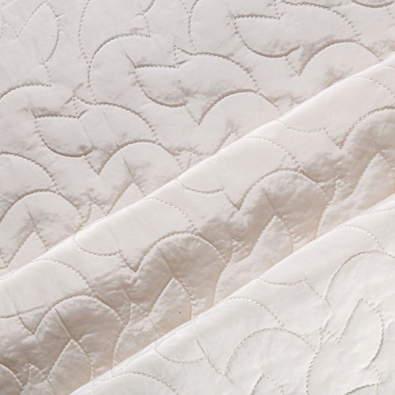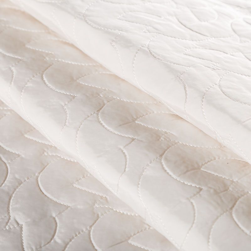 Двухслойная курточная ткань молочного оттенка, простеганная фигурной вышивкой нитками в тон. Нижний слой - синтепон, верхний - плотный матовый полиэстер. Очень мягкая и легкая, пластичная, хорошо драпируется. Прекрасно подойдет для  пошива легких пальто, курток, жилетов, накидок-кейпов, объемных сумок.