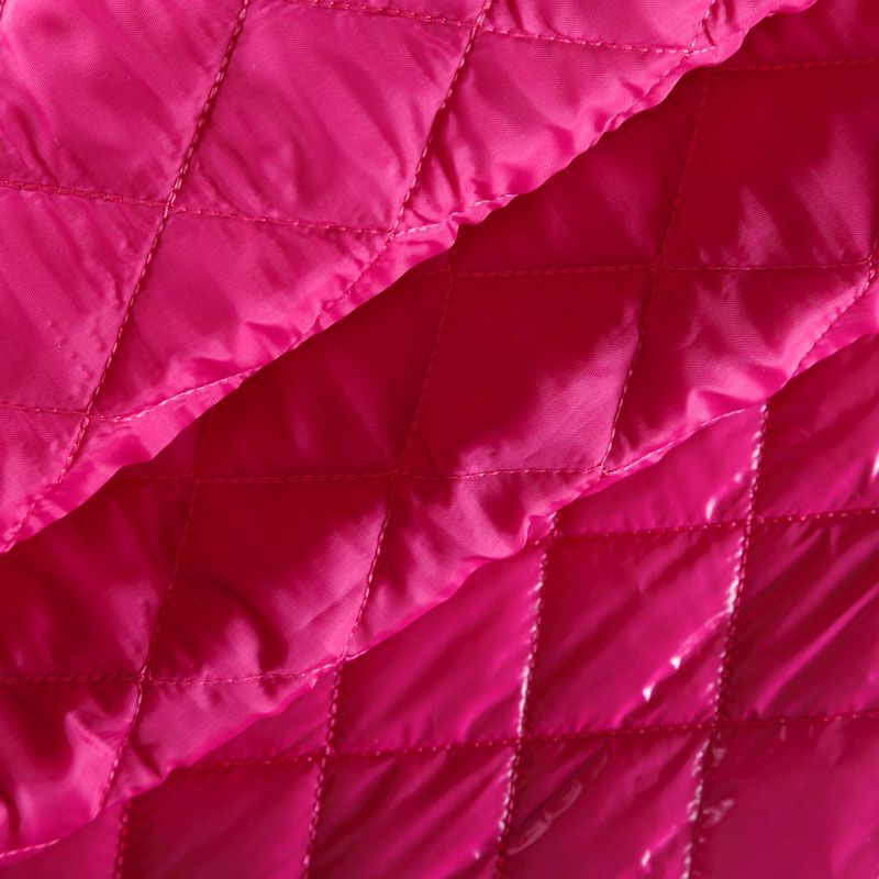 Трехслойная курточная стежка ярко-розового цвета, простеганная не крупными ромбами. Верхний слой - полиэстер, по качеству напоминающий болонь, средний слой - синтепон, нижний слой - подкладочная ткань в тон лицевой. Очень мягкая и легкая, пластичная, хорошо драпируется. Прекрасно подойдет для пошива легких пальто, курток, жилетов, накидок-кейпов, объемных сумок.