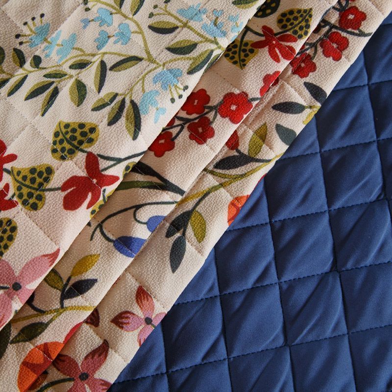Итальянская трехслойная курточная ткань насыщенного молочного цвета с ярким принтом, простеганная ромбами. Нижний слой - гладкий матовый полиэстер синего цвета, средний слой - синтепон, верхний - принтованный креп-шифон. Очень мягкая и легкая, пластичная, хорошо драпируется. Прекрасно подойдет для  пошива легких пальто, бомберов, парки, курток, жилетов, накидок-кейпов, объемных сумок.