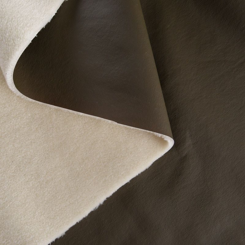 Ткань курточная на меховой основе 033-11914 оливково-коричневый однотонный