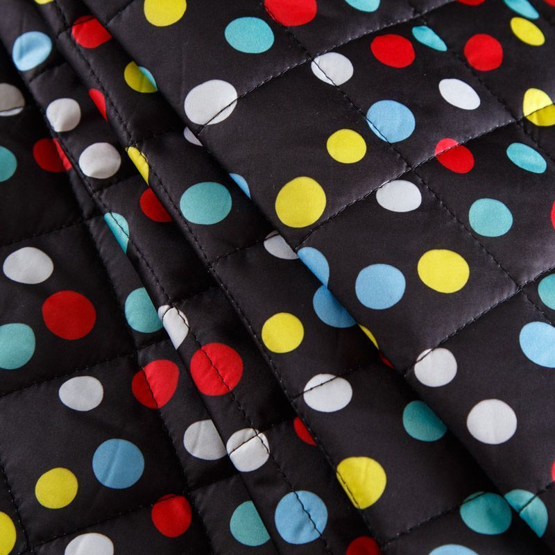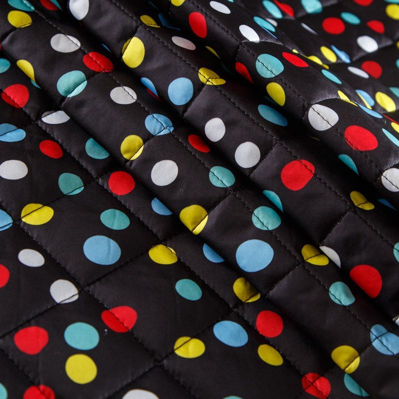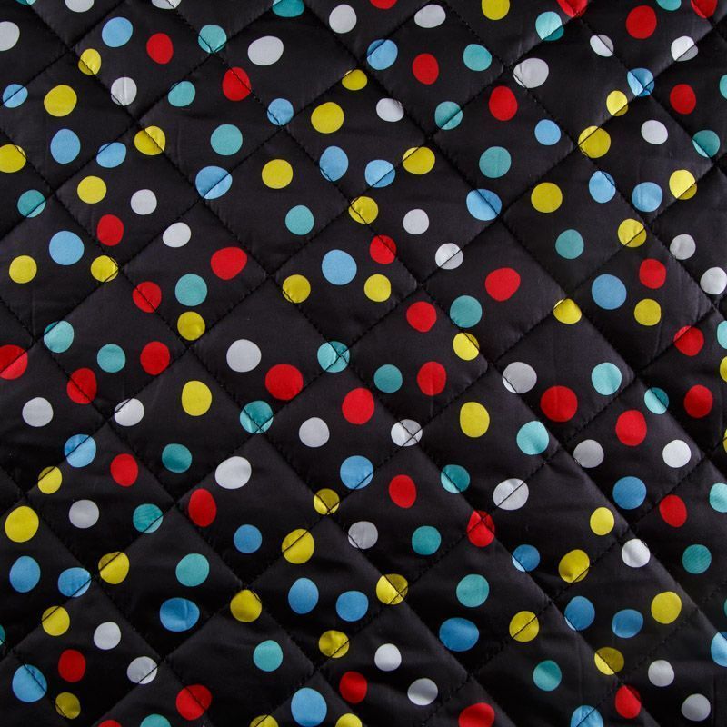Итальянская трехслойная курточная ткань черного цвета с ярким принтом, простеганная ромбами 5*5 см. Нижний слой - подкладочная ткань черного цвета, средний слой - синтепон, верхний - матовый гладкий полиэстер. Очень мягкая и легкая, пластичная, хорошо драпируется. Прекрасно подойдет для  пошива легких пальто, бомберов, парки, курток, жилетов, накидок-кейпов, объемных сумок.