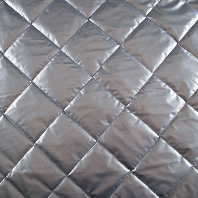 Итальянская трехслойная курточная ткань серебристо-серого оттенка, простеганная ромбами 10*10 см. Нижний слой - подкладочная ткань белого цвета, средний слой - синтепон, верхний - полуглянцевый гладкий полиэстер. Очень мягкая и легкая, пластичная, хорошо драпируется. Прекрасно подойдет для пошива легких пальто, бомберов, парки, курток, жилетов, накидок-кейпов, объемных сумок.