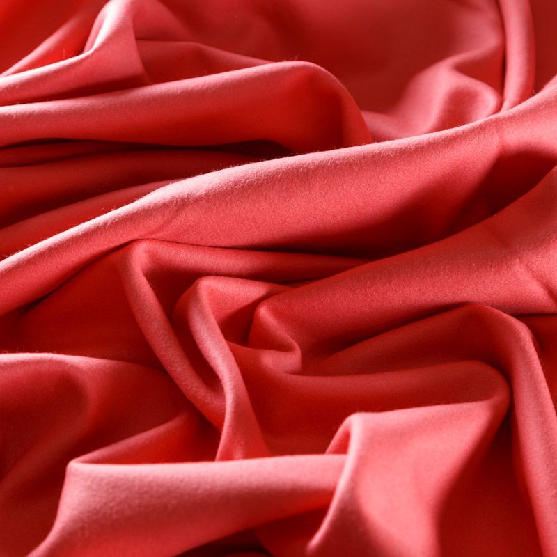 Пальтовая итальянская шерсть в кораллово-розовом оттенке. Ткань плотная, достаточно теплая, комфортная для одежды на сезон осень-зима. Полотно имеет короткий ворс. Мягкое и нежное на ощупь, не толстое и не тяжелое, хорошо держит форму. Прекрасно подойдет для пошива женских пальто, теплых костюмов, кейпов, мягких бомберов, жилетов и головных уборов.