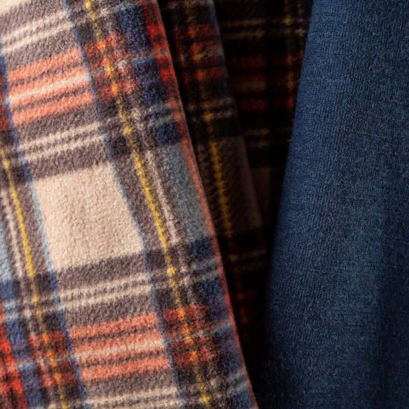 Пальтовая полушерстяная двухсторонняя ткань, мягкая и приятная на ощупь, формоустойчива, хорошо драпируется. Сочетание желтого, голубого, красного и черного цветов образует сложную красивую клетку на песочном фоне на лицевой стороне, изнанка - однотонный сине-голубой трикотаж. Ткань отлично подойдет на пальто любых фасонов, куртки-рубашки, теплого кардигана.