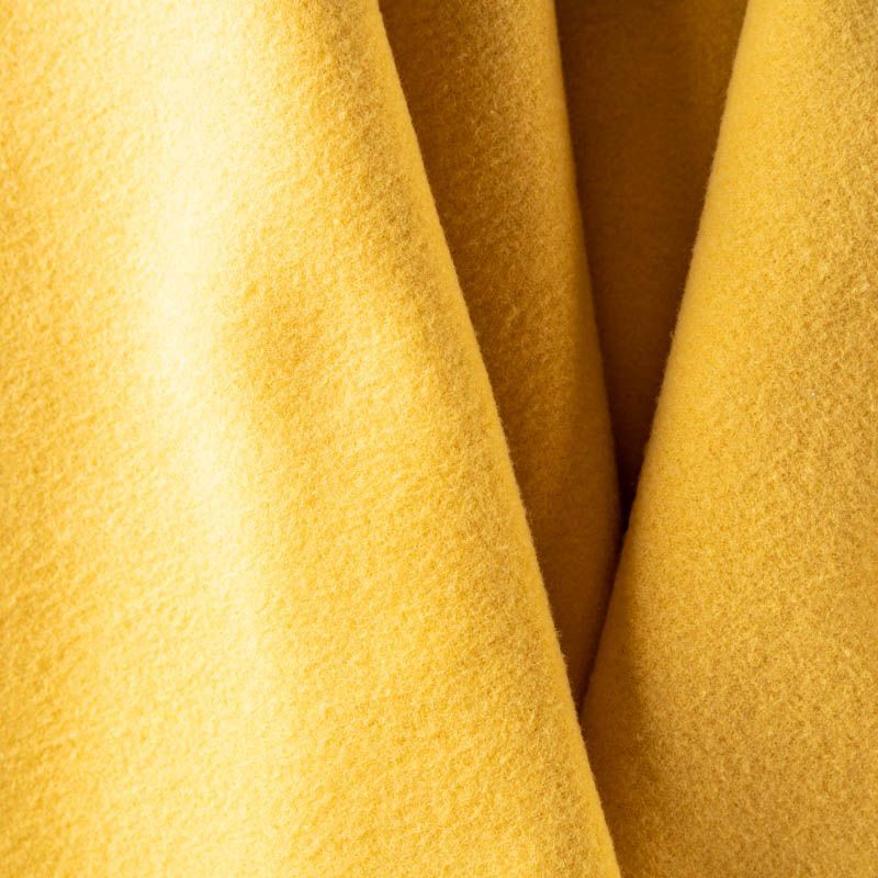 Плотная пальтовая ткань с коротеньким мягким ворсом на лицевой стороне и ровная на изнаночной. Она легко раскраивается, не скользит и не осыпается на срезах. Прекрасно подойдет для пошива женских пальто, теплых костюмов, кейпов, мягких бомберов, жилетов и головных уборов.