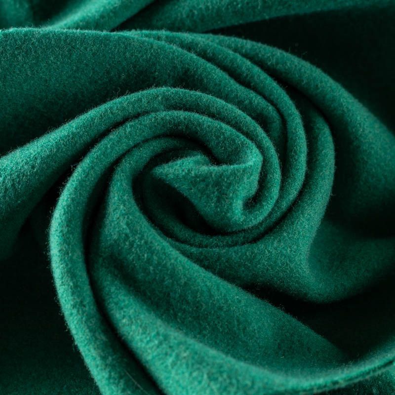 Плотная пальтовая ткань с коротеньким мягким ворсом на лицевой стороне и ровная на изнаночной. Она легко раскраивается, не скользит и не осыпается на срезах. Прекрасно подойдет для пошива женских пальто, теплых костюмов, кейпов, мягких бомберов, жилетов и головных уборов.