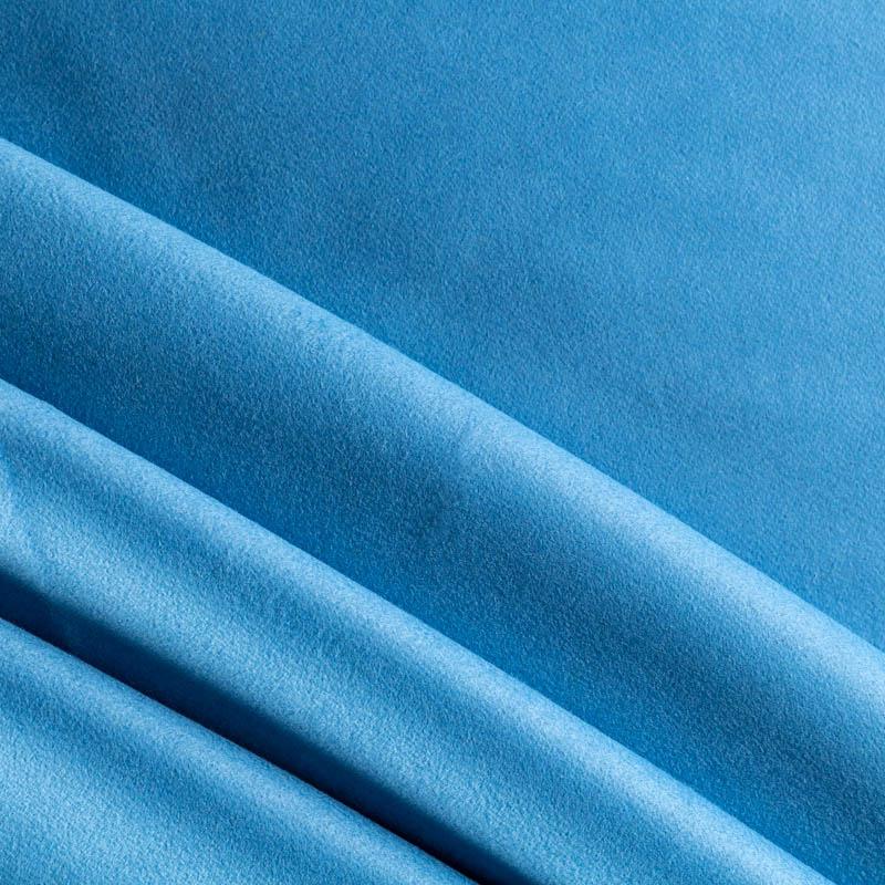 Пальтовая итальянская шерсть с кашемиром в голубом оттенке. Ткань плотная, достаточно теплая, комфортная для одежды на сезон осень-зима. Полотно имеет короткий ворс. Мягкое и нежное на ощупь, не толстое и не тяжелое, хорошо держит форму. Прекрасно подойдет для пошива женских пальто, теплых костюмов, кейпов, мягких бомберов, жилетов и головных уборов.