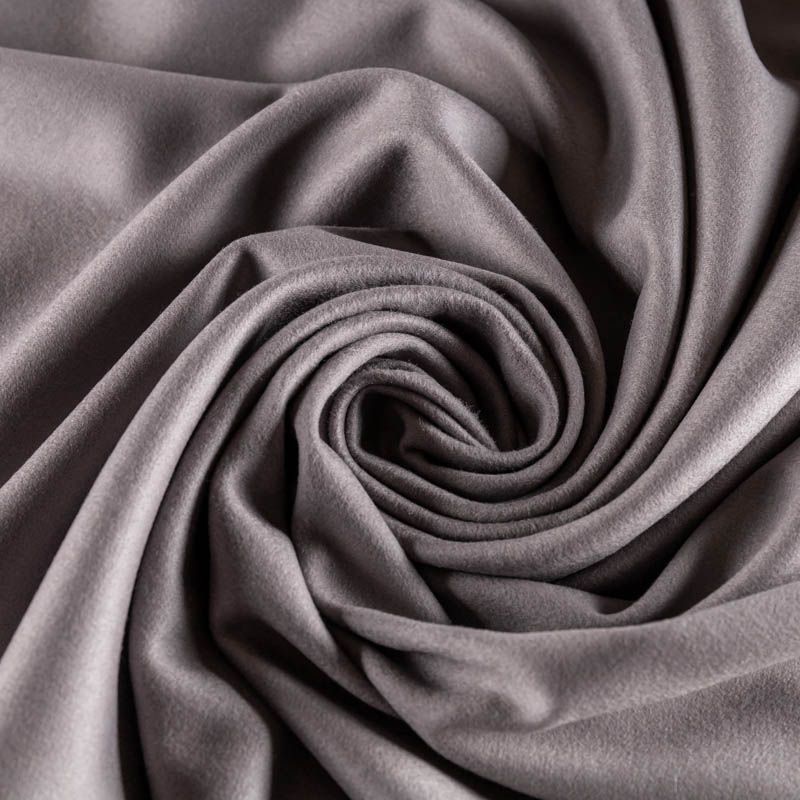 Пальтовая итальянская шерсть с кашемиром в сереом оттенке. Ткань плотная, достаточно теплая, комфортная для одежды на сезон осень-зима. Полотно имеет короткий ворс. Мягкое и нежное на ощупь, не толстое и не тяжелое, хорошр держит форму. Прекрасно подойдет для пошива женских пальто, теплых костюмов, кейпов, мягких бомберов, жилетов и головных уборов.