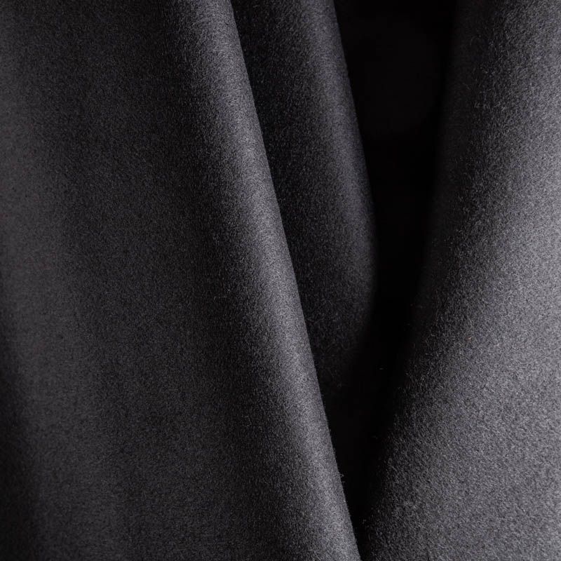 Пальтовая итальянская шерсть в классическом черном цвете. Ткань плотная, достаточно теплая, комфортная для одежды на сезон осень-зима. Полотно имеет короткий ворс. Мягкое и нежное на ощупь, не толстое и не тяжелое, хорошр держит форму. Прекрасно подойдет для пошива женских пальто, теплых костюмов, кейпов, мягких бомберов, жилетов и головных уборов.