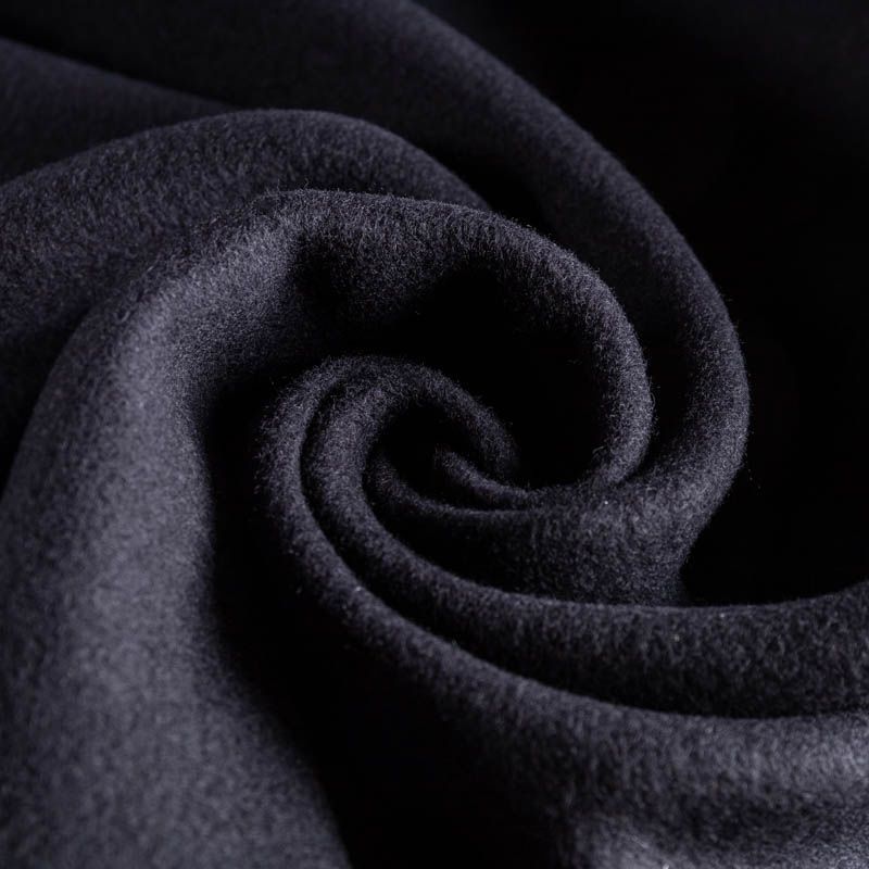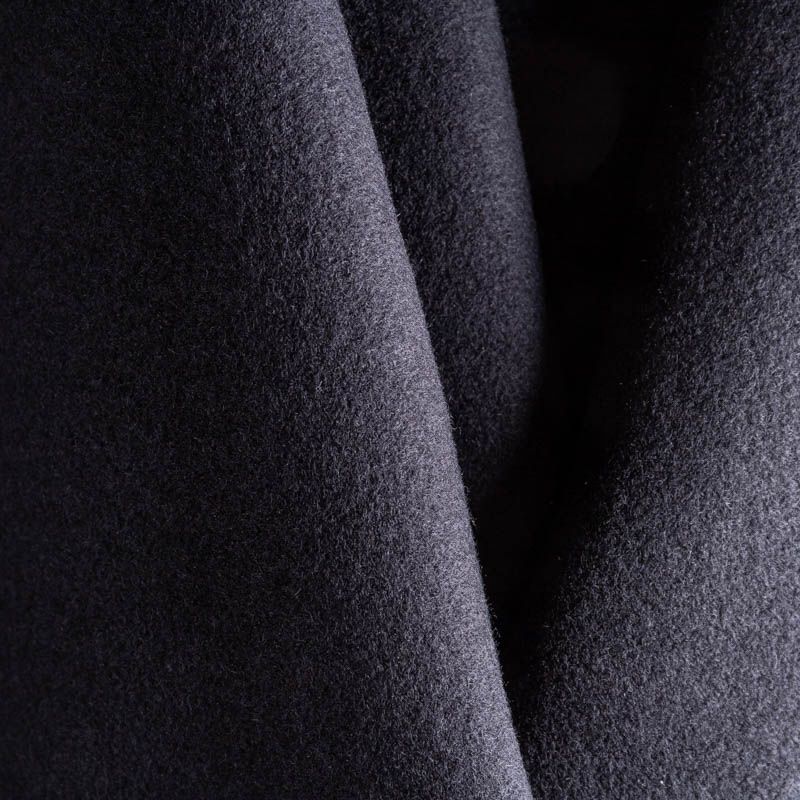 Пальтовая итальянская шерсть в черном цвете. Ткань плотная, достаточно теплая, комфортная для одежды на сезон осень-зима. Полотно имеет короткий ворс. Мягкое и нежное на ощупь, не толстое и не тяжелое, хорошр держит форму. Прекрасно подойдет для пошива женских пальто, теплых костюмов, кейпов, мягких бомберов, жилетов и головных уборов.