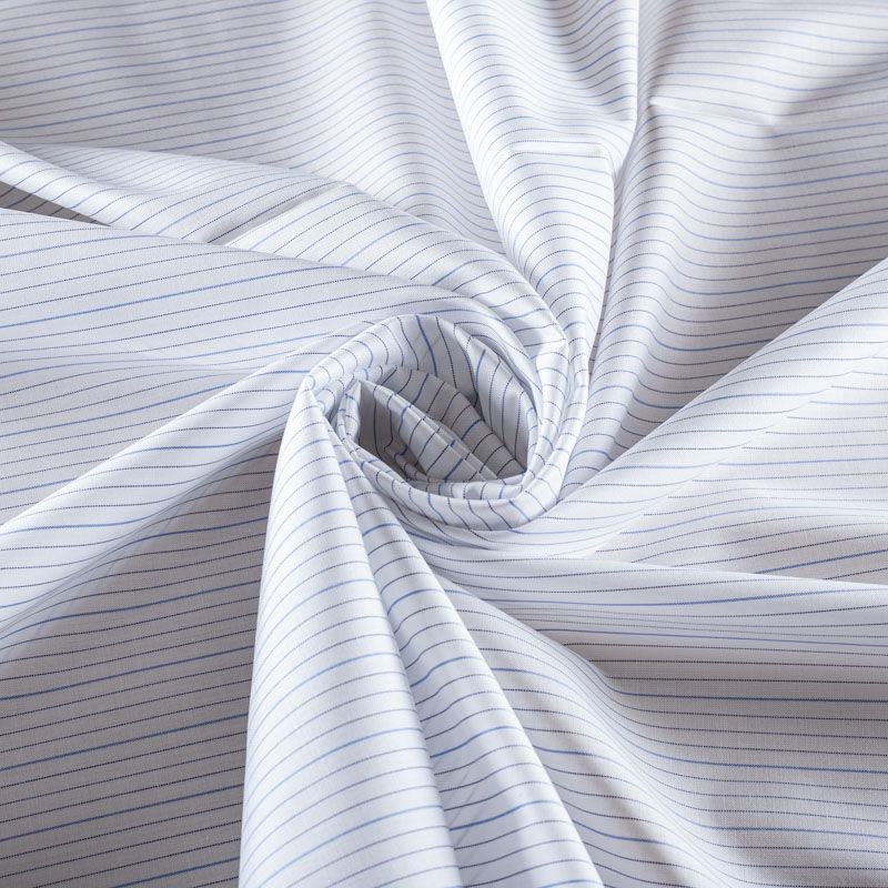 Итальянский плательно-рубашечный хлопок в тонкую полоску в синих оттенках. Ткань мягкая, лёгкая, непрозрачная, пластичная и приятная к телу, хорошо драпируется, имеет гладкую матовую поверхность и сатиновое плетение. Прекрасно подойдет как для пошива платья-рубашки, сарафана, платьев различных фасонов, туники, топа, летнего костюма, комбинезона, мужской и детской одежды.