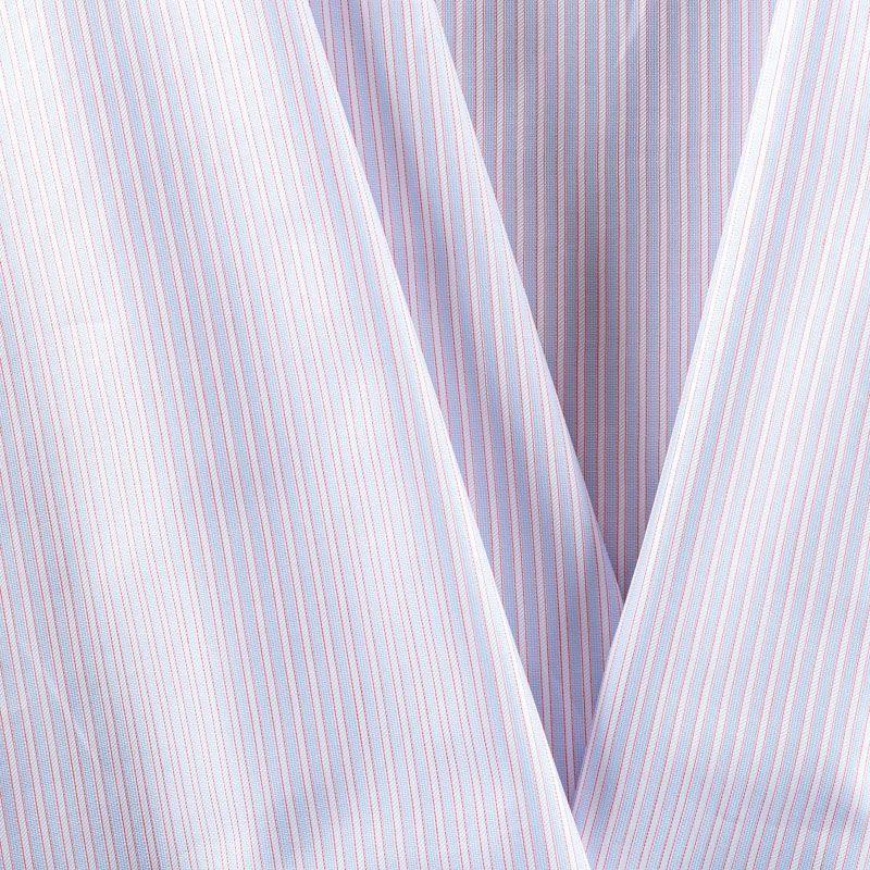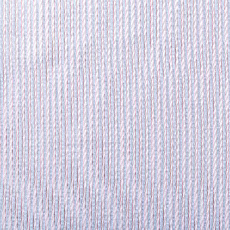 Итальянский плательно-сорочечный хлопок с горизонтальной жаккардовой белой полоской на пастельно-голубом фоне. Ткань мягкая, тонкая, лёгкая, непрозрачная, пластичная и приятная к телу, хорошо драпируется, имеет фактурную поверхность, сатиновый блеск. Прекрасно подойдет как для пошива предметов мужского гардероба, так и для блуз, платья-рубашки, сарафана, туники, топа, летнего костюма, детской одежды.