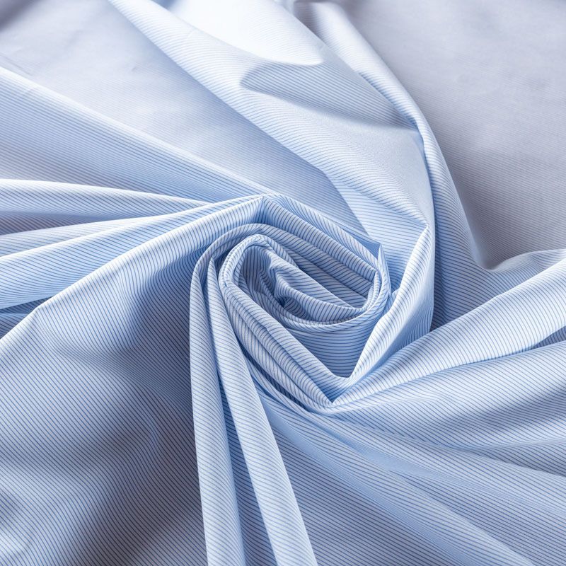Итальянский плательно-рубашечный хлопок в тонкую полоску голубого оттенка. Ткань мягкая, лёгкая, непрозрачная, пластичная и приятная к телу, хорошо драпируется, имеет гладкую матовую поверхность и сатиновое плетение. Прекрасно подойдет как для пошива платья-рубашки, сарафана, платьев различных фасонов, туники, топа, летнего костюма, комбинезона.