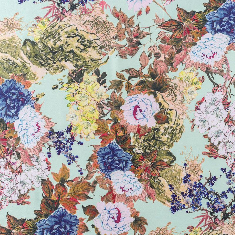 Ткань плательно-рубашечная 049-08358 снежная мята принтованный