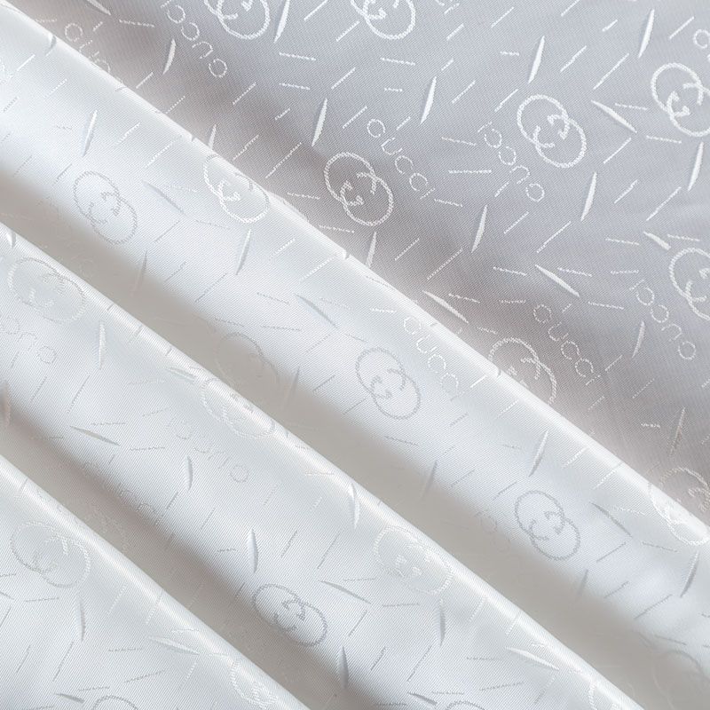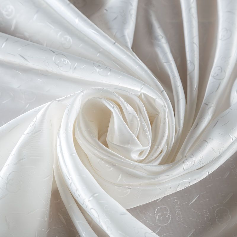 Смесовая подкладочная ткань молочного оттенка с жаккардовым узором и красивым лоском. Полотно средней плотности, легкое, не просвечивает, хорошо скользит, не тянется. Подойдет для изготовления таких изделий, как пальто, костюмы, куртка, шуба, платье, жакет.