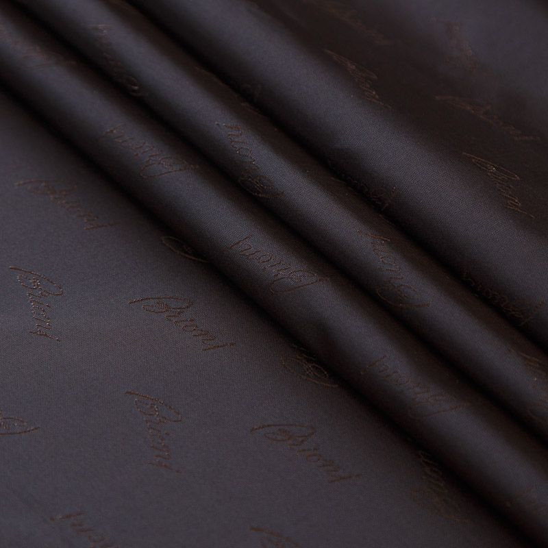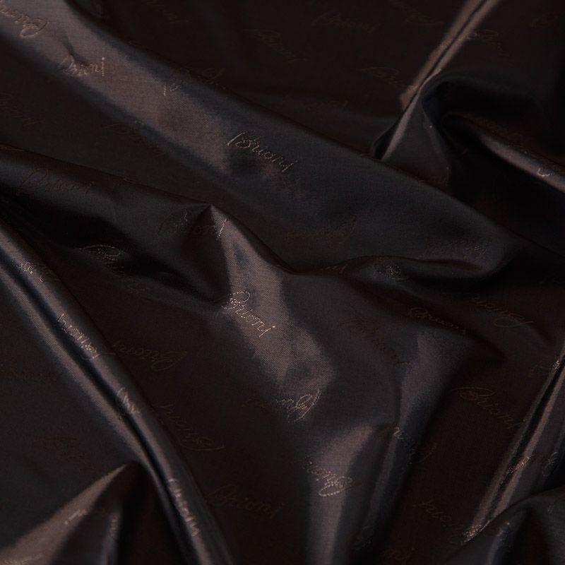 Итальянская подкладочная вискоза из коллекции Brioni. Ткань имеет очень плотное сатиновое плетение, по всей поверхности расположены лого бренда. Подойдет в качестве подклада не только для изделий костюмной группы, но и для верхней одежды: пальто, бомбер, парка, куртка, шуба.