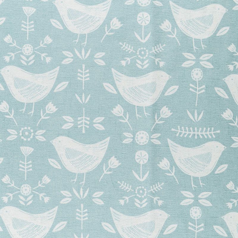 Хлопковая портьерная ткань Нарвик из коллекции Сканди английского производителя Fryett's Fabric. На мятно-бирюзовой текстурированной основе наснесен принт в виде белых стилизованных птиц и цветов. Ткань средней плотности, прекрасно держит форму, драпируется в устойчивые складки. Подойдет для классических портьер, римских штор, покрывал, подушек, скатертей, салфеток и других элементов текстильного интерьера как в самостоятельном исполнении, так и качестве компаньона к однотонным варинтам.