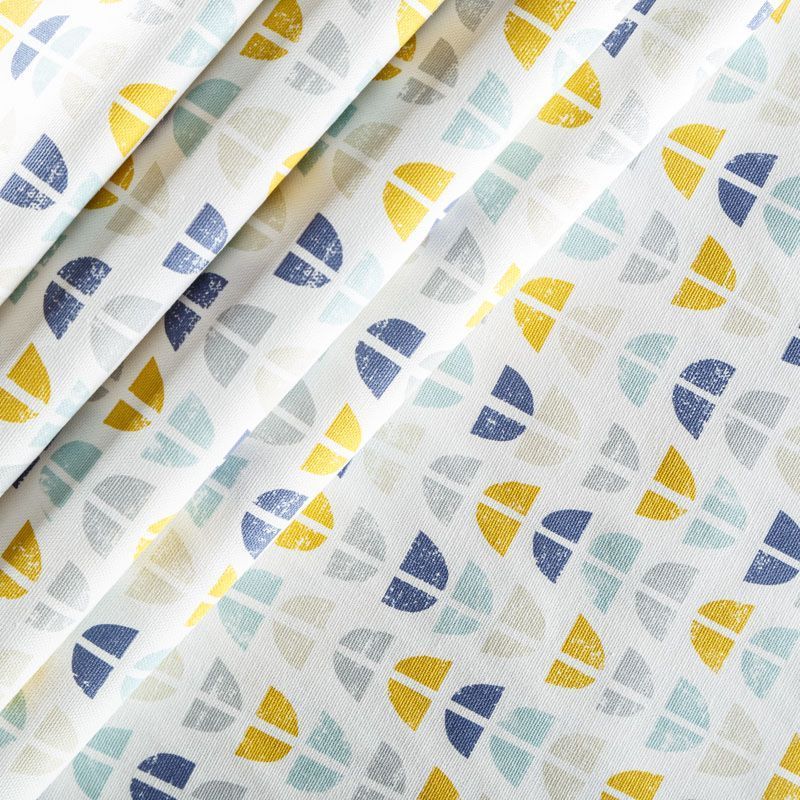 Хлопковая портьерная ткань Оденсе из коллекции Сканди английского производителя Fryett's Fabric. На белой текстурированной основе наснесен цветной абстрактный геометрический принт. Ткань средней плотности, прекрасно держит форму, драпируется в устойчивые складки. Подойдет для классических портьер, римских штор, покрывал, подушек, скатертей, салфеток и других элементов текстильного интерьера как в самостоятельном исполнении, так и качестве компаньона к однотонным варинтам.