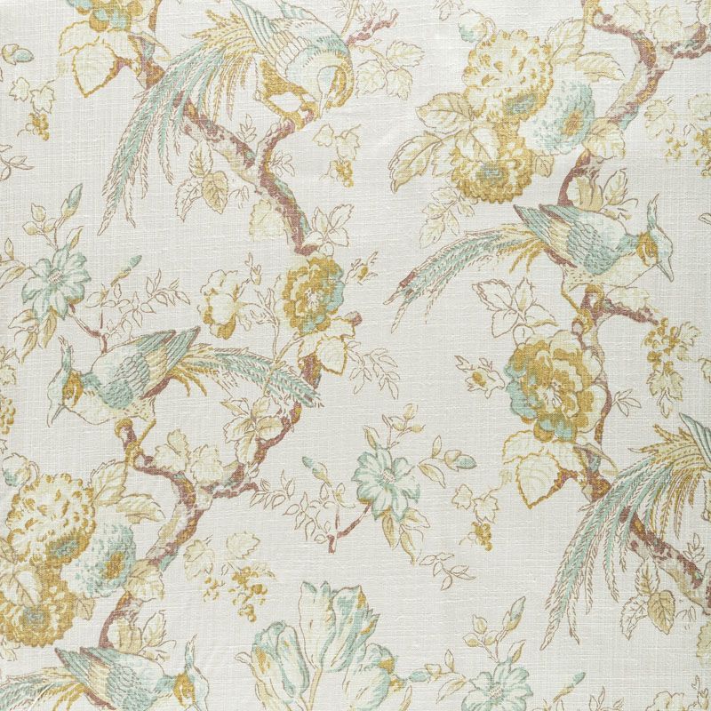Элегантная ткань из коллекции Ренессанс известного бренда Fryett's с тропическим рисунком, выполненным в мельчайших деталях, нанесенных на текстурированную хлопковую основу. Ткань средней плотности, прекрасно держит форму, драпируется в устойчивые складки. Подойдет для плотных штор, покрывал, подушек, скатертей, салфеток  и других элементов текстильного интерьера как в самостоятельном исполнении, так и качестве компаньона к цветным варинтам.