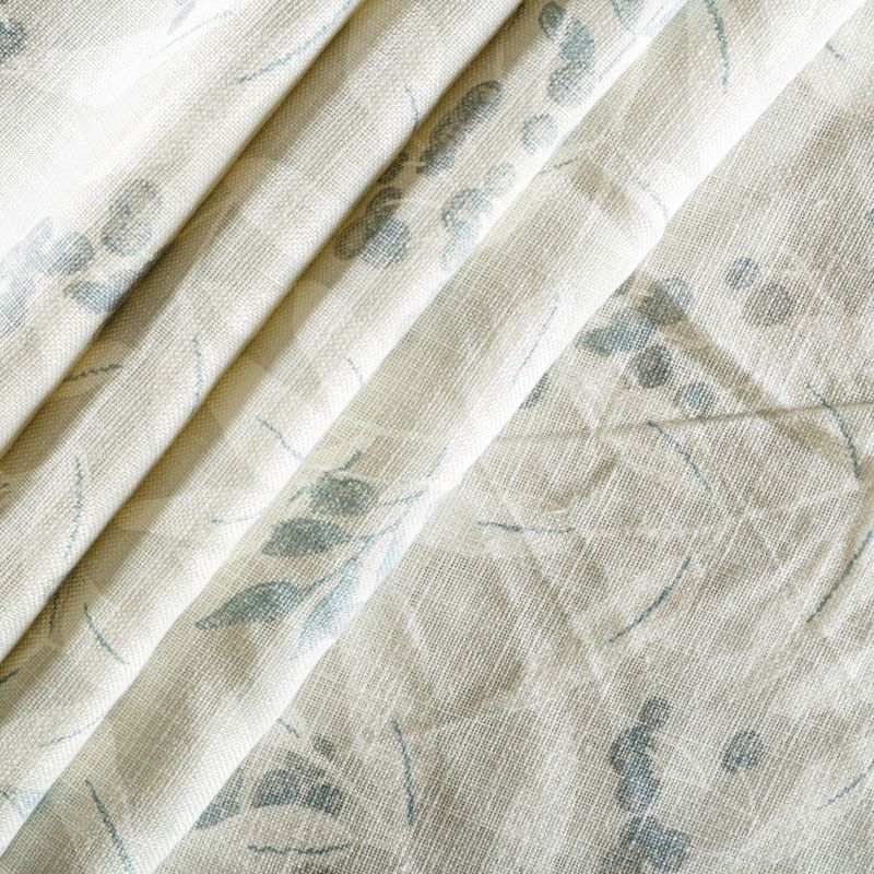 Натуральная хлопковая портьерная ткань с растительным принтом в пришлушенных серо-голубых оттенках. Ткань средней плотности, без блеска, хорошо драпируется, имеет полонтяное переплетение. Прекрасно подойдет для оформления детской, кухни, столовой или дачного интерьера. Можно использовать для пошива портьер, римской шторы, салфеток, столового белья, подушек, покрывал и других предсетов текстильного интерьера.