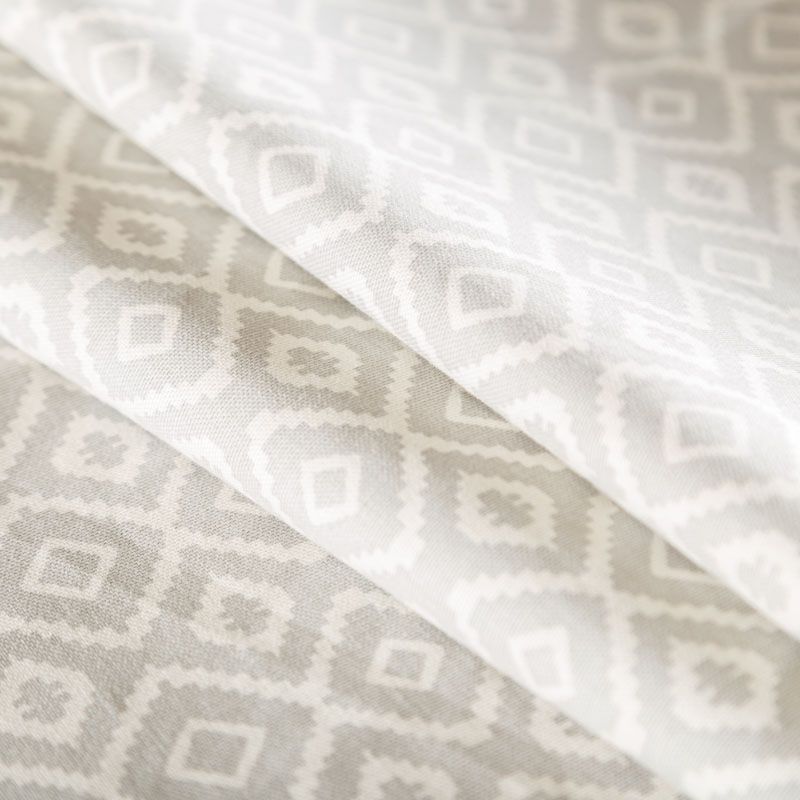 Хлопковая портьерная ткань от английского производителя. На текстурированной серой основе наснесен геометрический узор в белом цвете. Ткань средней плотности, прекрасно держит форму, драпируется в устойчивые складки. Подойдет для классических портьер, римских штор, покрывал, подушек, скатертей, салфеток и других элементов текстильного интерьера как в самостоятельном исполнении, так и качестве компаньона к однотонным варинтам.