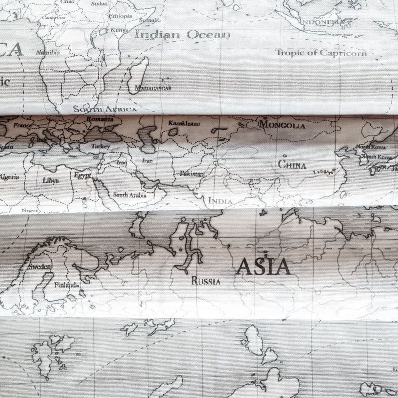 Хлопковая ткань с от английского производителя с гео принтом для юных искателей приключений и любителей путешествовать.Ткань средней плотности, без блеска, хорошо драпируется, имеет полонтяное переплетение. Прекрасно подойдет для оформления детской или дачного интерьера. Можно использовать для пошива портьер, римской шторы, салфеток, столового белья, подушек, покрывал, обивки мебели.