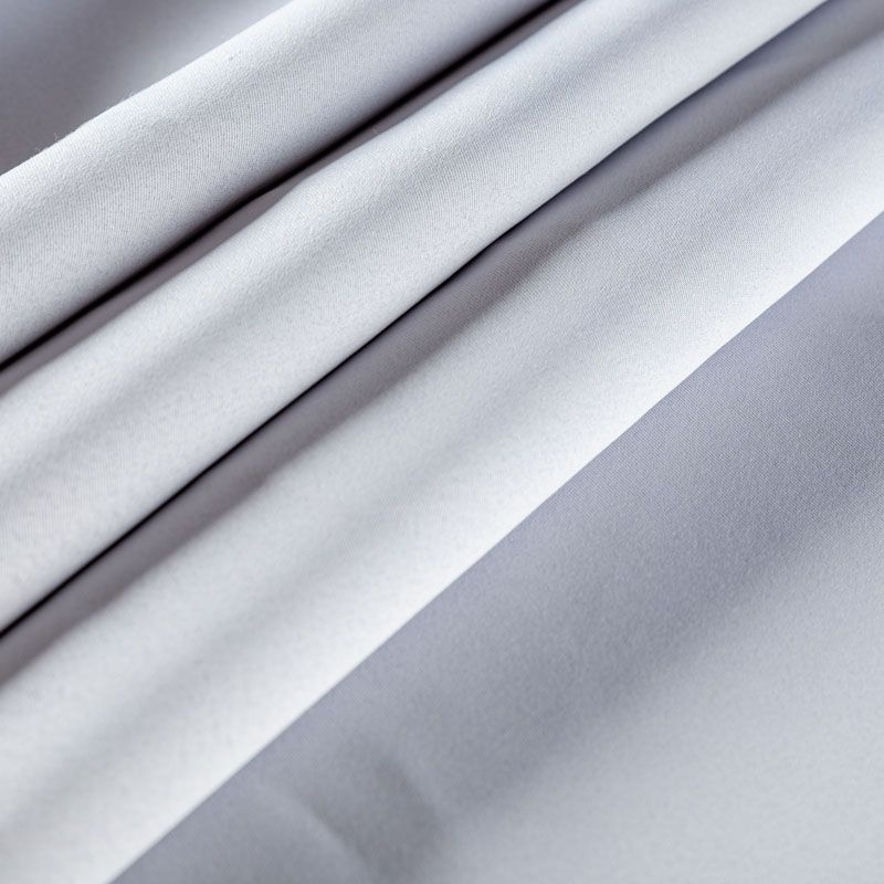 Двухстороняя плотная ткань. Обе стороны гладкие, имеют сатиновый легкий глянец. Ткань хорошо драпируется, укладываясь в крупные ниспадающие пластичные складки и позволяет использовать любые виды крепления для штор – люверсы, ленту, кольца.  Блокирует от 30 до 70 % проникновение света в помещении, не склонна к выгоранию и деформации. Удачно впишется в такие интерьеры, как эко, лофт, модерн в качестве портьер и других элементов текстильного оформления.