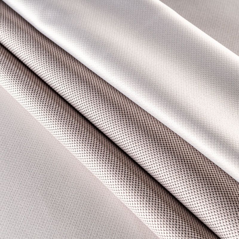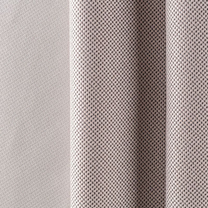 Двухстороняя плотная ткань.Одна сторона - матовая с плетением рогожка,а другая с сатиновым легким глянцем. Хорошо драпируется, укладываясь в крупные ниспадающие пластичные складки и позволяет использовать любые виды крепления для штор – люверсы, ленту, кольца.  Блокирует до 50 % проникновение света в помещении, не склонна к выгоранию и деформации. Удачно впишется в такие интерьеры, как эко, лофт, модерн в качестве портьер и других элементов текстильного оформления.