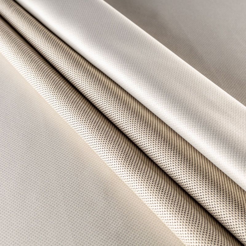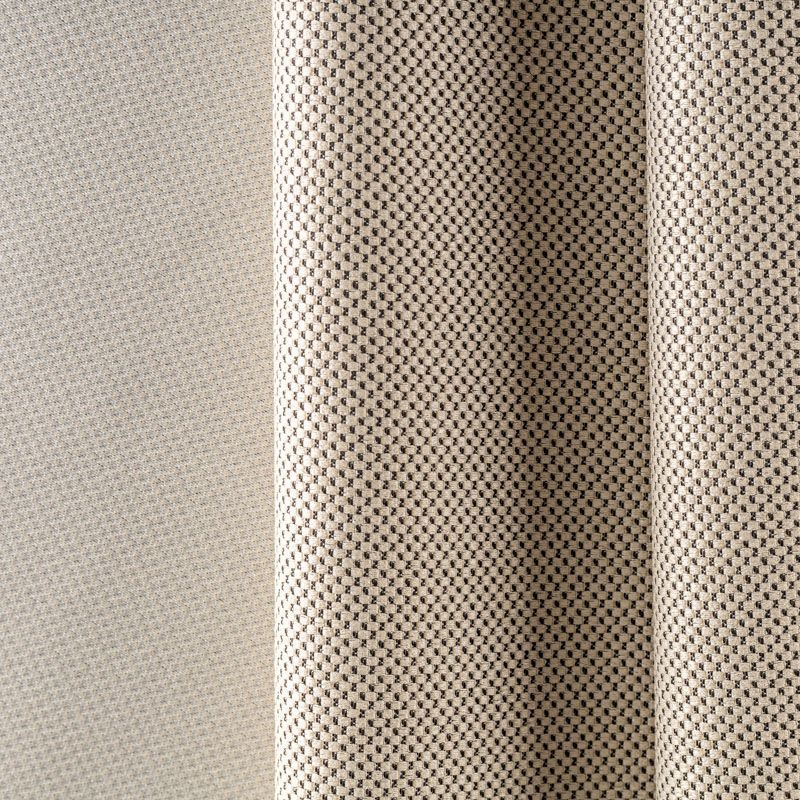 Двухстороняя плотная ткань.Одна сторона - матовая с плетением рогожка,а другая с сатиновым легким глянцем. Хорошо драпируется, укладываясь в крупные ниспадающие пластичные складки и позволяет использовать любые виды крепления для штор – люверсы, ленту, кольца.  Блокирует до 50 % проникновение света в помещении, не склонна к выгоранию и деформации. Удачно впишется в такие интерьеры, как эко, лофт, модерн в качестве портьер и других элементов текстильного оформления.