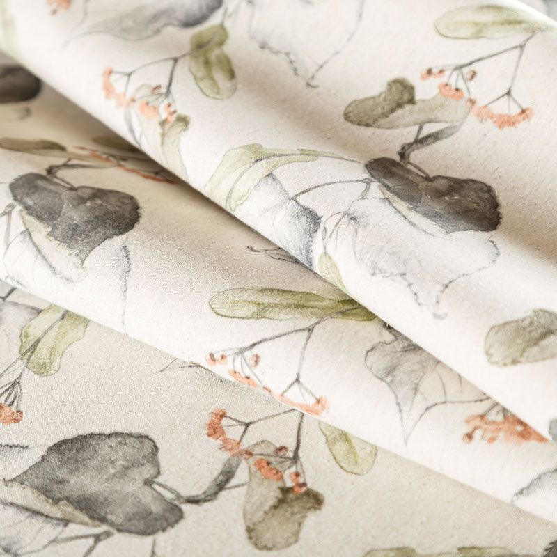 Декоративный смесовый хлопок с растительным принтом от испанского производителя Visatex. Ткань средней плотности, приятная и гладкая на ощупь. Интересный вариант для пошива штор, декоративных подушек и покрывал, изготовления текстильных элементов в кухнях-столовых, гостинных, спальнях и даже детских.