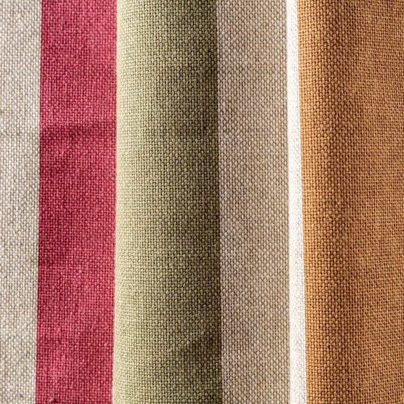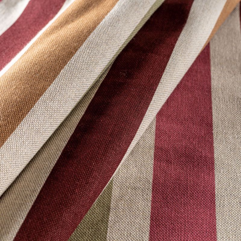 Испанская матовая фактурная портьерная ткань в полоску, которая расположена вдоль кромки. Представлена в яркой цветовой палитре. Ткань очень приятная на ощупь за счёт хлопка в составе и очень универсальная, прекрасно впишется в самые разные стилевые направления (прованс, кантри). Можно использовать для пошива портьер, римской шторы, салфеток, столового белья, подушек, покрывал, обивки мебели.