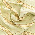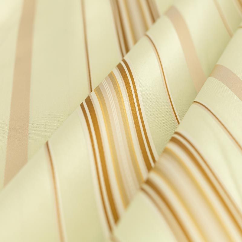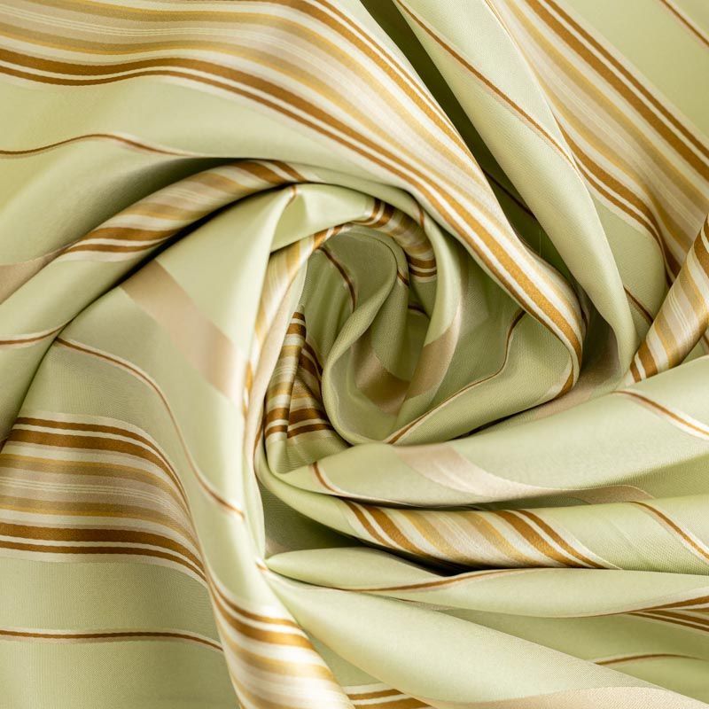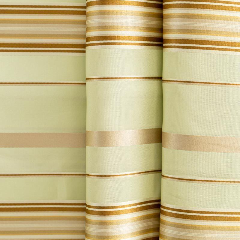 По своей структуре шелковые портьерные ткани являются мягким и красивым материалом, способным отражать свет. Изделия из шелка удивительно переливаются и блестят, придавая интерьеру помещения особую атмосферу и вид. Такие портьерные ткани лучше всего применять для создания покрывал, наволочек, штор, легких, воздушных и светлых – они отлично подойдут для затемненных мест либо закрытых окон. Шелковая ткань зеленого оттенка с узкими вертикальными полосками прекрасно подойдет для помещений с невысоким потолком и широкими оконными проемами.