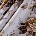 Принтованная ткань с ярким цветочным дизайном, выполненный на смесовой основе. Ткань прекрасно подходят для оформления интерьеров в английском стиле. Цветочные букеты в коричнево-желтых оттенках с крупными бутонами представлены на рубчатой плотной основе полотняного плетения. Подойдет для пошива портьер, римской шторы, покрывала, чехлов для мебели, скатертей, салфеток, подушек.