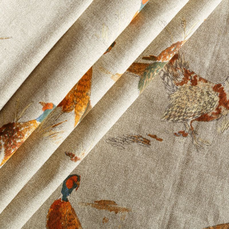 Английская ткань из коллекции Фазан известного бренда Fryett's изображением ярких птиц на текстурированной хлопковой основе. Ткань средней плотности, прекрасно держит форму, драпируется в устойчивые складки. Подойдет для плотных штор, покрывал, подушек, скатертей, салфеток и других элементов текстильного интерьера.