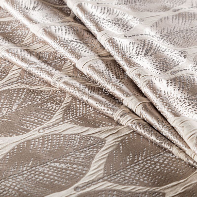 Стильная жаккардовая ткань светло-коричневого оттенка с потрясающим геометрическим стилизованным дизайном листьев из коллекции Акация известного бренда Fryett's. Ткань высокой плотности, имеет фактурную поверхность и сдержанный сатиновый блеск, прекрасно держит форму. Ткани этой коллекции прекрасно впишутся в традиционный и современный интерьер в качестве римской или классической шторы, подушек, обивки мебели.