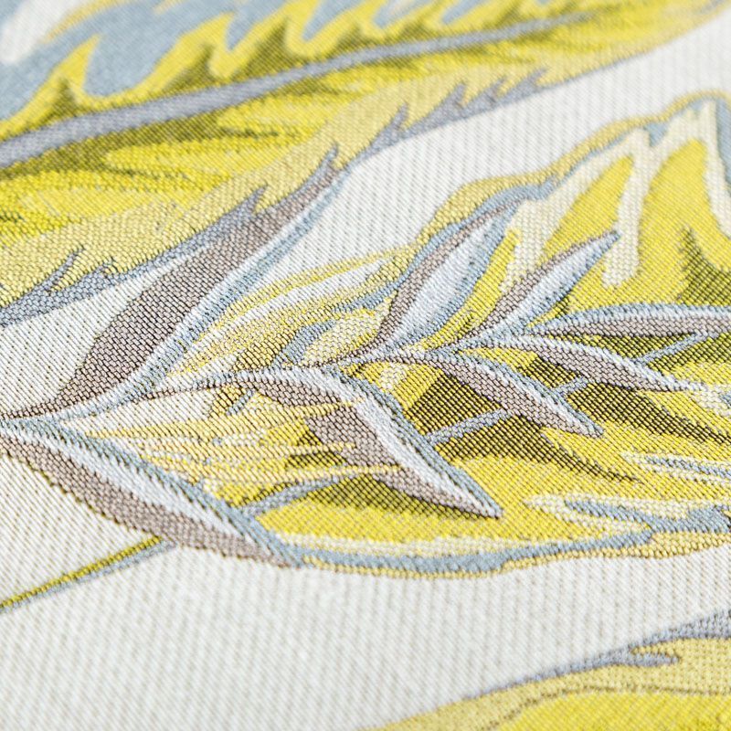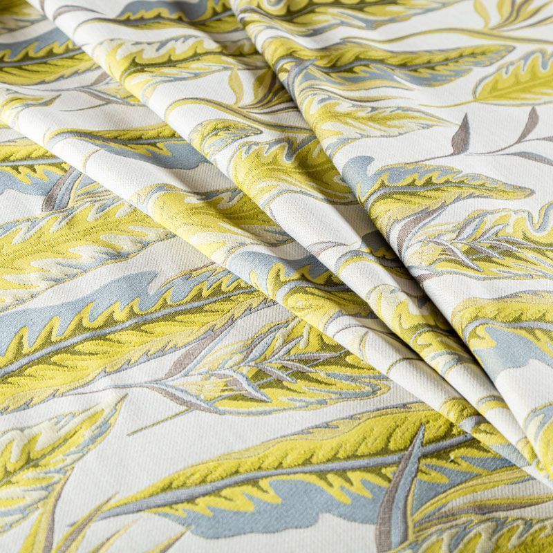 Акцентная жаккардовая ткань с потрясающим растительно-анималистическим дизайном в желтых цветах из коллекции Бродсфорт известного бренда Fryett's. Ткань средней плотности, имеет фактурную, матовую поверхность, прекрасно держит форму. Ткани этой коллекции прекрасно впишутся в традиционный и современный интерьер в качестве римской или классической шторы, подушек, обивки мебели.