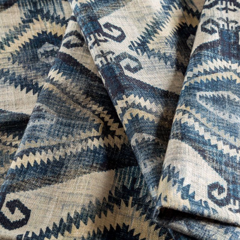 Натуральная ткань из коллекции Санта Круз известного бренда Fryett's с самобытным этническим диайном на текстурированной хлопковой основе. Ткань средней плотности, прекрасно держит форму, драпируется в устойчивые складки. Подойдет для плотных штор, покрывал, подушек, скатертей, салфеток и других элементов текстильного интерьера.