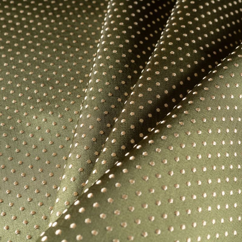Универсальный жаккардовый рисунок в виде мелкого горошка светло-золотистого оттенка идеален для оформления интерьера в большинстве стилей. Ткань средней плотности, хорошо держит форму и драпируется. Рекомендуется для пошива штор, декоративных чехлов, покрывал, изготовления столового белья, подушек, скатертей и салфеток.