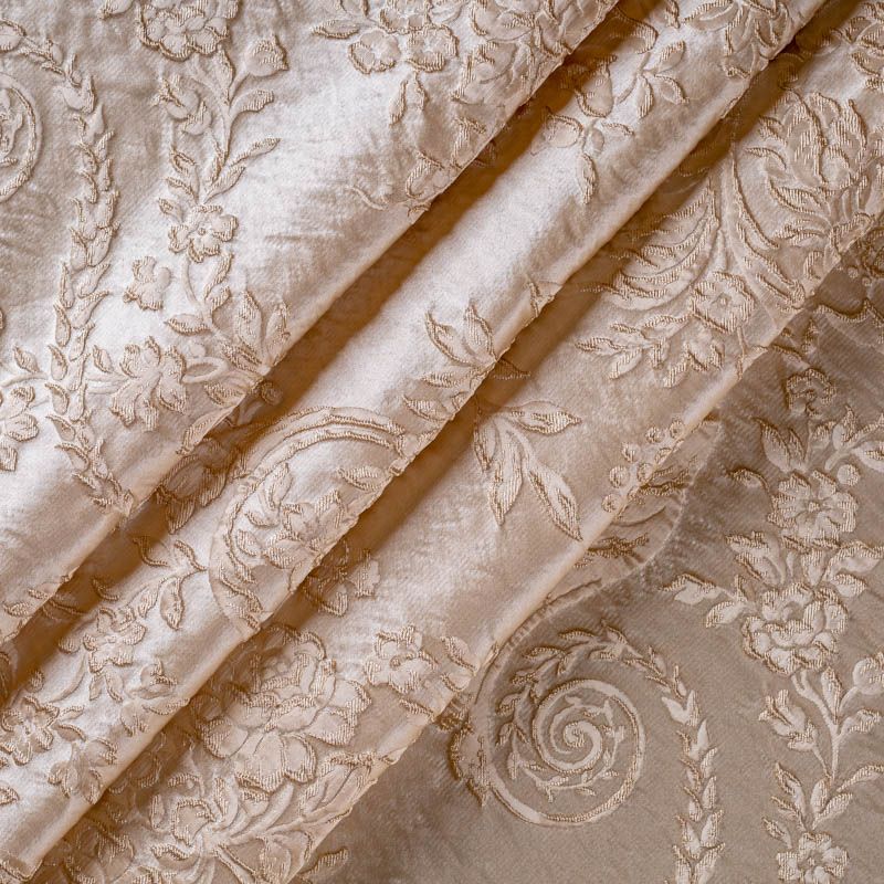 Элегантная коллекция шелковых жаккардов с цветочным рисунком выполненна в однотонном сдержанном варианте. Но различные ткацкие переплетения, использованные при создании ткани, создают объемность рисунка,  эффект роскоши придает благородный блеск полотна. Элементы мебели или декора, шторы и ламбрекены, выполненные с использованием этой ткани, создадут атмосферу наполняющую душу покоем и гармонией.