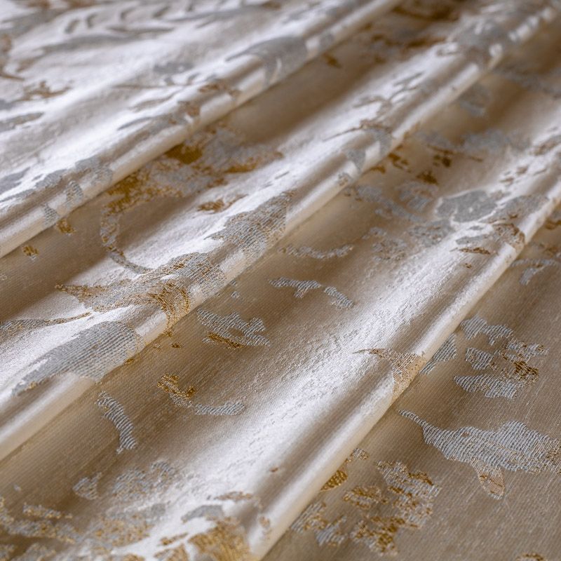 Итальянская жаккардовая портьерная ткань в благородной цветовой гамме с цветочно-растительным орнаментом. Ткань хорошо драпируется. За счет сочетания шелковых и льняных нитей рисунок как будто вытравлен на поверхности ткани. Подходит для пошива штор, ламбрекенов, покрывал, наволочек, чехлов на мебель и других элементов декора для стилизованных классических интерьеров.