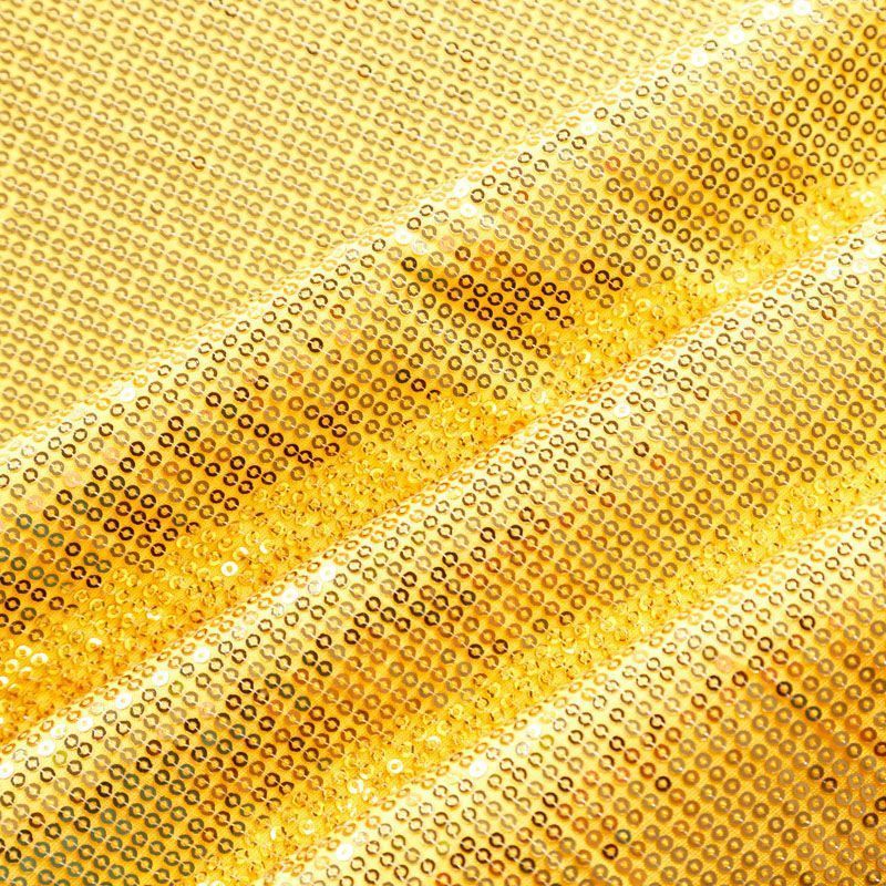 Блестящие пайетки в золотом цвете. Мелкие, размером около 2 мм. Основа - "холодное" тонкое трикотажное полотно, комфортное в носке. Ткань не прозрачная, тянется. Подойдет для вечернего, коктельного платья или юбки, комбинезона, топа, танцевальных и сценических костюмов.