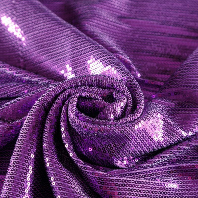 Блестящие пайетки насыщенного сиреневого оттенка. Мелкие, размером около 3 мм. Основа - трикотажное полотно, комфортное в носке. Ткань не прозрачная, тянется. Подойдет для вечернего коктельного платья или юбки, комбинезона, топа, танцевальных и сценических костюмов.