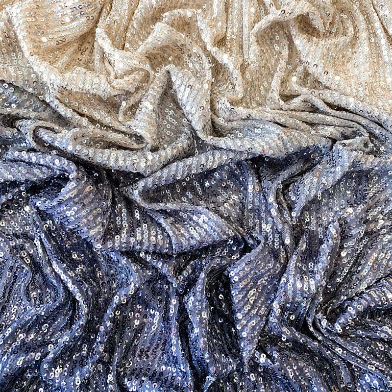 Невероятные пайетки на тонкой сетке с роскошным мерцанием мелких блесток с переходом цвета. Ткань очень хорошо драпируется, красиво переливается, имеет глянцевый блеск, пластичная и эластичная и в длину, и в ширину. Градиент расположен в направлении от кромки к кромке. Набирается объемом. Это может быть нарядное платье, Пайетки — идеальный материал для праздников и вечеринок. Из них получится эффектное платье, жакет, боди, туника, юбка или комбинезон.