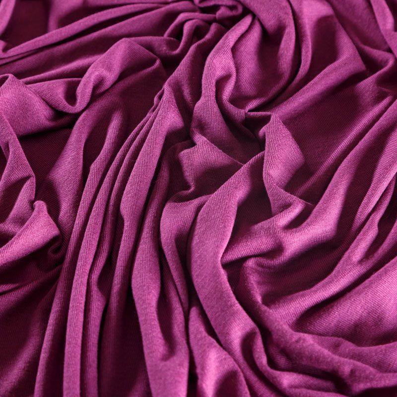 Трикотажное полотно пурпурного отенка очень приятное на ощупь, уютное и мягкое. Хорошо тянется, не светится, переплетение гладь. Подойдет для пошива топов, футболки, бадлонов, лонгслива, кардигана, спортивного платья.