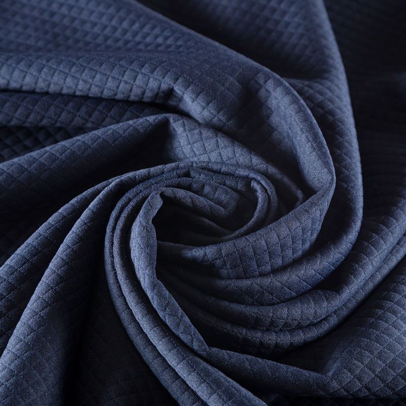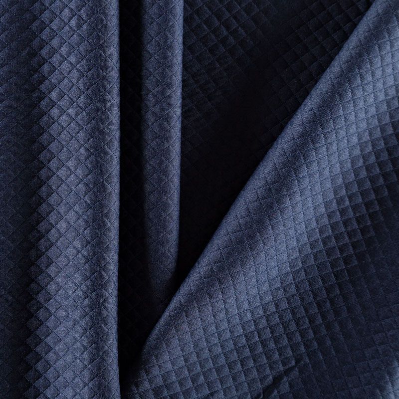 Плотное трикотажное полотно с имитацией стежки. Поверхность ткани объемная, мягкая, приятная на ощупь. Трикотаж не просвечивается, хорошо тянется за счет эластана в составе, держит форму. Прекрасно подойдет для пошива легких пальто, курток, бомберов, кардиганов, платьев, юбок, шорт.