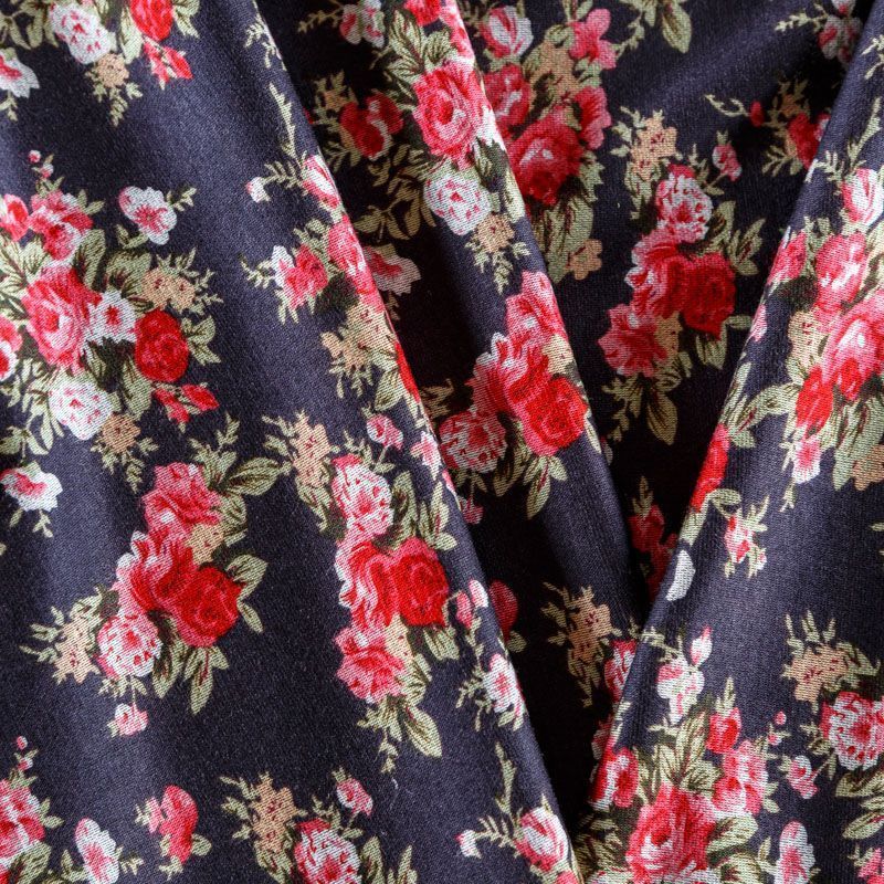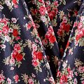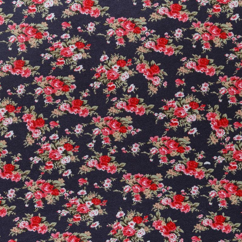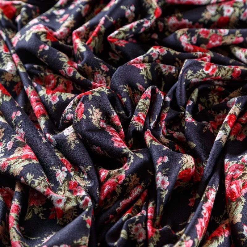 Плательный трикотаж в графитовос оттенке с цветочным принтом, средней плотности, хорошо тянется за счет эластана в составе. Ткань не сухая, мягкая, не просвечивает, хорошо драпируется. Отлично подойдет для пошива платья, туники, лонгслива, топа, юбки.