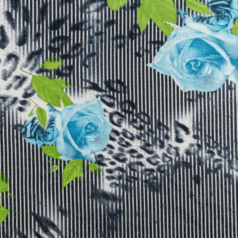 Трикотаж средней плотности, хорошо тянется за счет эластана в составе. Сочетание нескольких принтов образуют сложный цветочно-геометрический рисунок. Ткань не сухая, мягкая, не просвечивает, теплая, хорошо драпируется. Отлично подойдет для пошива платья, кардигана, свитшоша, лонгслива, мягкого жакета, юбки.